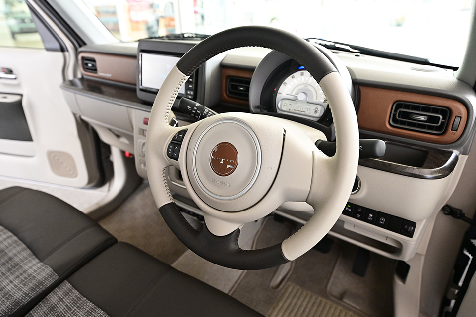 インテリアも確かなこだわりが感じられます。木目調のパネルやファブリック素材のシートは、まるでカフェのような落ち着いた空間を演出。運転席に座るだけで、ほっとするような安心感があります。さらに、インパネには「ラパン(うさぎ)」のアイコンがちょこんと登場。細部にまで遊び心が詰まっていて、毎日の運転がちょっと特別になりますね。